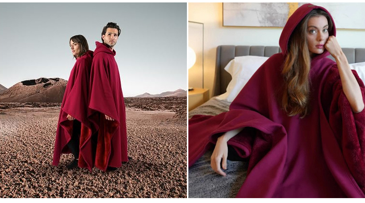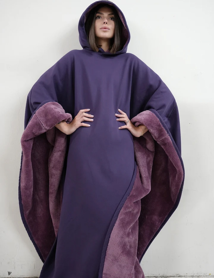 Kapuze mit Knöpfen, lockerer Wollmantel, Unisex.